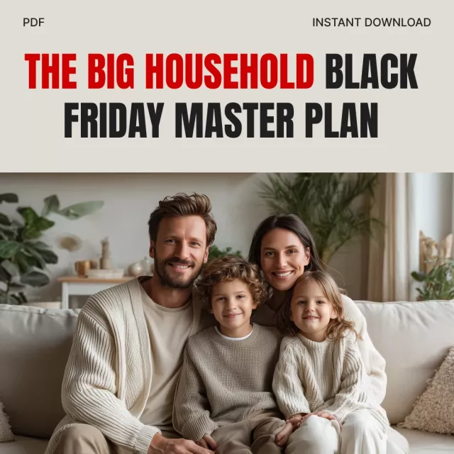 Unlike generic sale guides, The Big Household Black Friday Master Plan focuses on teamwork and structure — not just discounts. It’s thoughtfully crafted to help every member of a big household play a role, stay on budget, and actually enjoy the experience.